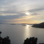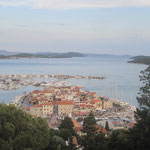 Tribunj, Vorort von Vodice mit Altstadt auf kleiner Insel. Auf dem Berg ist eine kleine Kapelle mit tollem Ausblick auf die Kornaten-Inseln. Empfehlenswert ist der Sonnenuntergang über den Kornateninseln. Kleine Cafes und Restaurants an der Promenade laden hier ein.
