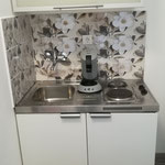 Ausstattung: Doppelbett, W-LAN, Ventilator, neue Klimaanlage, Pantryküche mit 2 Kochplatten, Kühlschrank, Senseo Kaffeemaschine, bitte Pads mitbringen, Wasserkocher, Geschirr, Töpfe etc., Badezimmer mit Dusche und WC, Balkon mit Tisch und Stühlen überdacht. Frisch renoviertes Studioapartment für 2 Pers. mit Blick in den Garten. Keine Haustiere erwünscht!